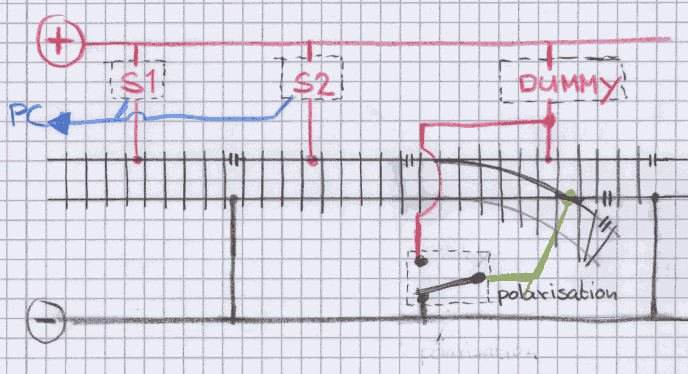 This will trigger an event as soon as the first current drawing wheel set touches the isolated detection track.