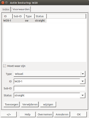| train 4) | Trein ID moet overeenkomen met de loc ID. De gerelateerde loc ID wordt gebruikt voor het beoordelen van de status waardes.5) | De voorwaarde wordt gecontroleerd met de loc ID van het object, niet met de loc ID in de actie besturing. |