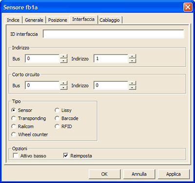 In Rocrail i Sensori sono sempre indirizzati con il FADA (vedere il prossimo paragrafo).