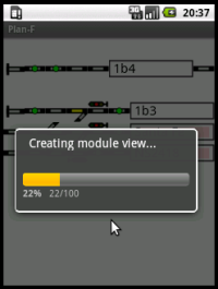 Après la connexion au serveur Rocrail une boite de dialogue montre la progression du chargement du plan.
