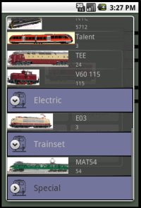 Toucher la photo de la locomotive fera défiler l'activité manette, Locomotive et Configuration de la locomotive.