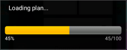 After connecting the Rocrail server a dialog shows the progress of loading the plan.