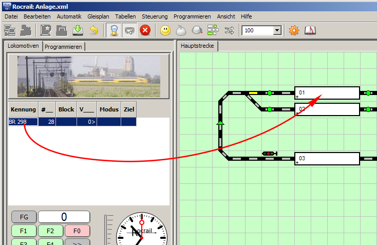 - Es wird mit Zugverfolgung gearbeitet, d. h. Rocrail kennt den Standort der Züge