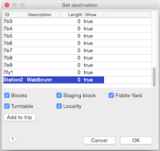 Astuce: Avec Linux et OSX (mais pas Windows), une loco peut être placée à un niveau différent en utilisant D & D: La loco est d'abord glissée sur l'onglet du niveau jusqu'à ce que le niveau s'ouvre, puis la loco est drop / placé dans le bloc désiré.