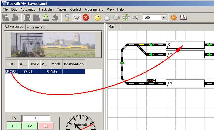 - Rocrail garde la trace des trains, c'est à dire , il est à tout moment conscient de la position actuelle (bloc) d'un train particulier