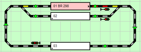 La configuration est la même qu'en mode automatique. La seule différence est que le train est démarré à partir du menu contextuel du bloc de départ à l'aide du point de menu "Semi-automatique". Rocrail choisit alors un bloc de disponible de destination. Maintenant, le train peut être et doit être contrôlé manuellement.