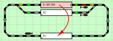 Pour utiliser une locomotive en mode automatique, il suffit de la faire glisser vers le bloc de destination, ce qui la fera démarrer immédiatement.