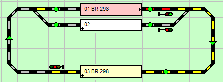 Pour faire tourner une locomotive sans destination, soit Démarrer la locomotive est sélectionné dans le menu contextuel du bloc (voir figure dans la section ci-dessus), soit Démarrer toutes les locomotives est sélectionné dans le menu Automatique ou un double clic est effectué sur le symbole du bloc.