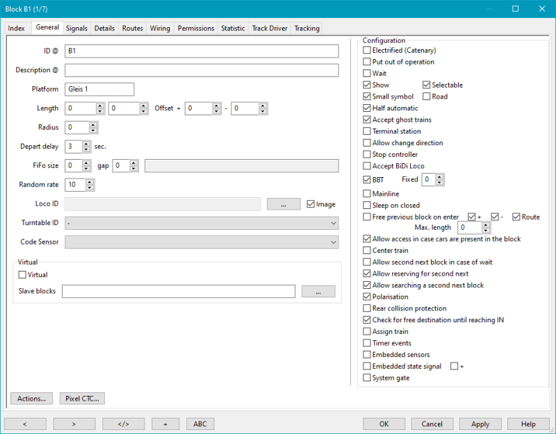 Note: For virtual timing also the route length between IN of the start block and ENTER the target block have to be set in the Route length