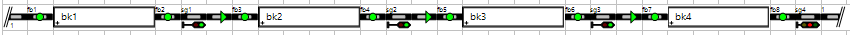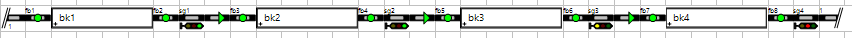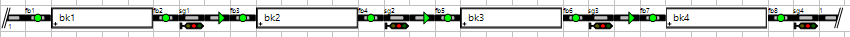 | Ligne principale avec les "Blocs Ouverts" (bk2, bk3, bk4): Les signaux affiche la voie libre ou un avertissement préalable |
