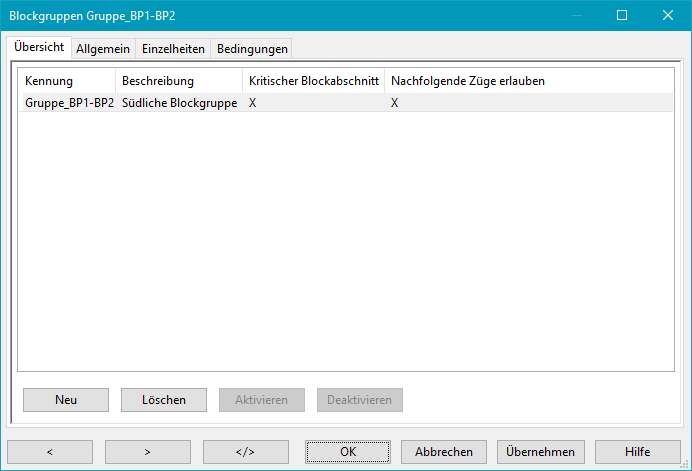 Erzeugt einen neuen Blockgruppen-Eintrag. Zu Beginn ist die Kennung auf "New" eingestellt, was auf der Registerkarte "Allgemein" geändert werden muss.