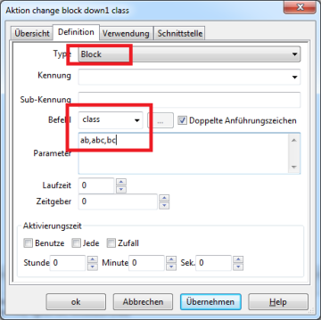 Now we set for block up1 the class: lok1,lok2 (under properties-permissions - see pic below):