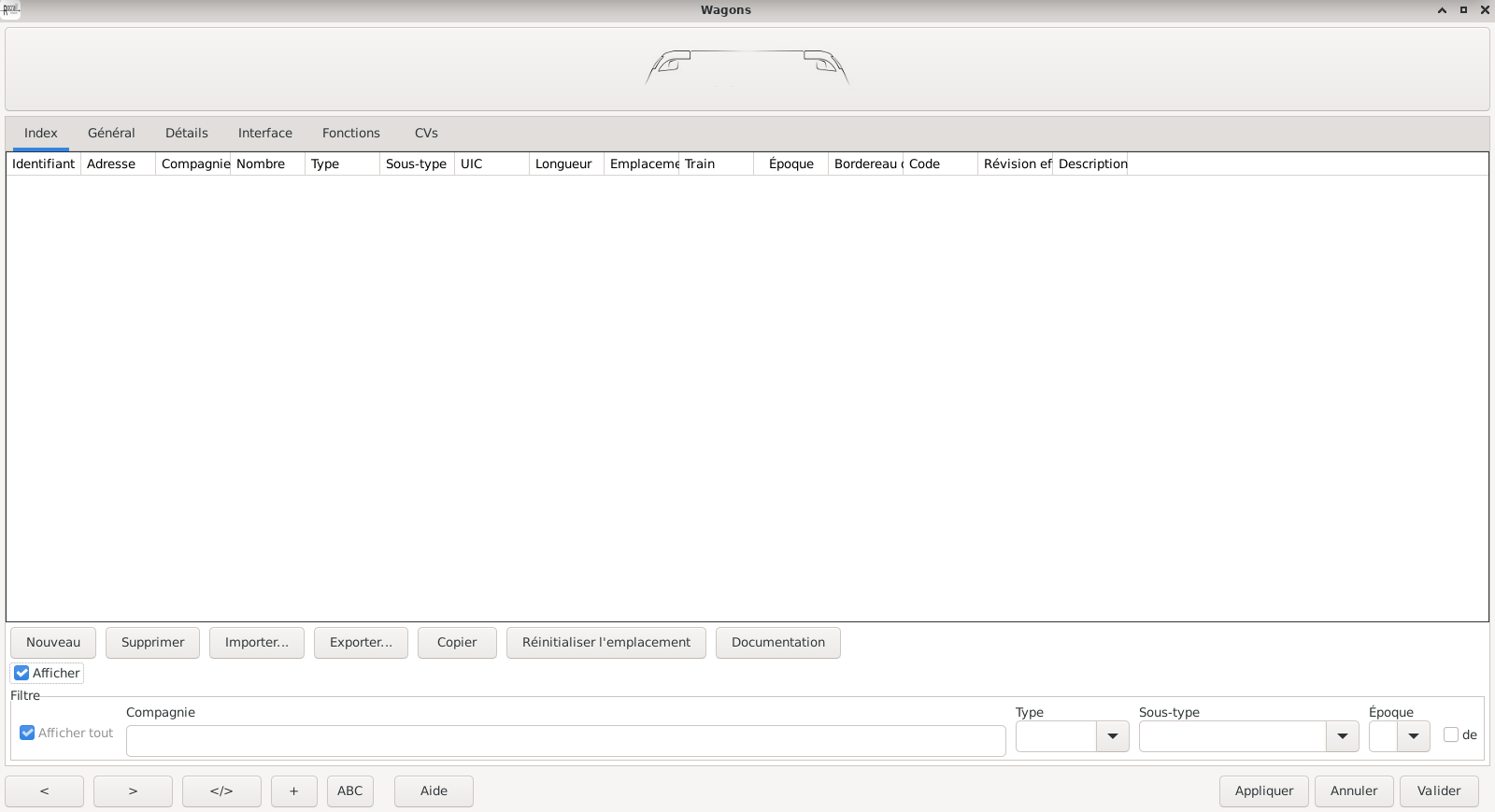 Créer un nouveau wagon. Initialement l'identifiant est défini à "New" qui doit être changé dans l'onglet Général.