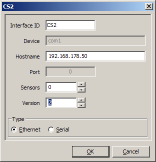 The IP-address of the CS2 is entered here. See also Network Settings and Configuring the CS2 below.