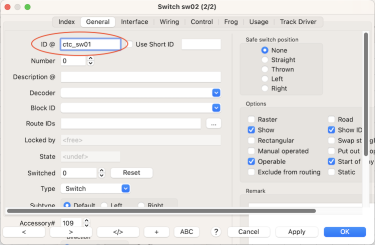 Any CTC object at first gets a standard ID like "sw02".