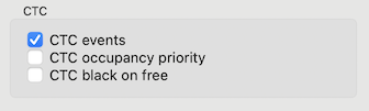| CTC occupancy priority | OFF | default; CTC track elements will show route color |