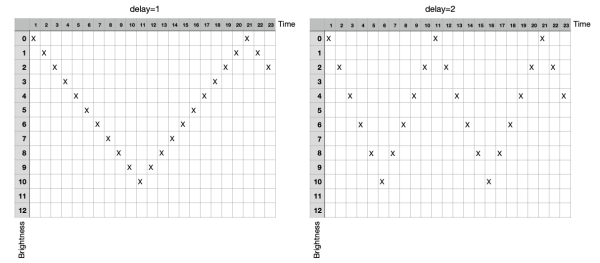 - The frequence of blinking can be controlled by the value of "Delay".