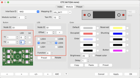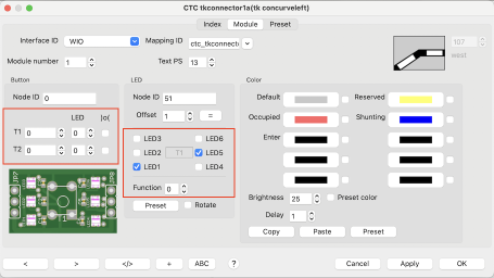 - donc une sélection "Utilisée" est utilisée pour la LED1 et la LED5; voir https://wiki.rocrail.net/doku.php?id=ctc:ctc-led-en#led1