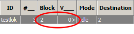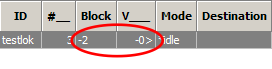 2 is shown in column Block. The meaning is the loco is in block 2 and the block enter side is +.