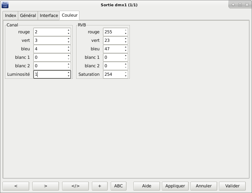| Adresse | Adresse du périphérique DMX entre 1 et 512 |