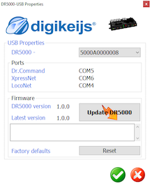 | LocoNet, LNTCP, is recommended for the DR5000 communication. |