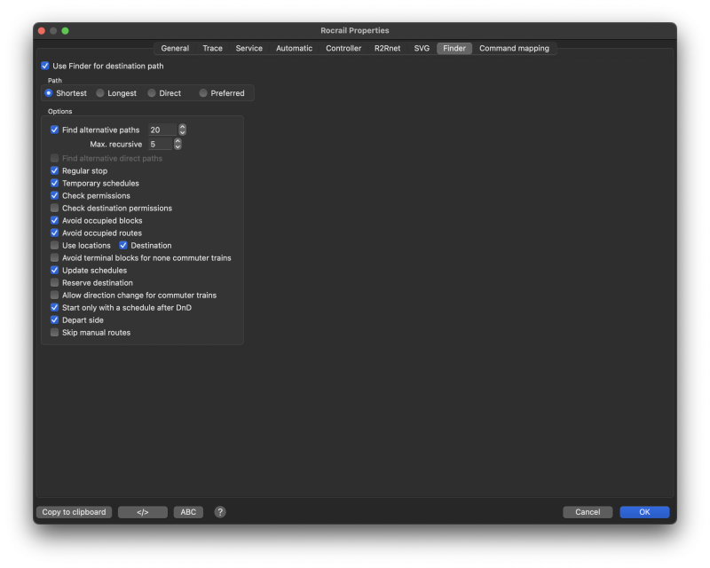 This function must be enabled with Use Finder for destination path or in the Rocrail Automode Properties