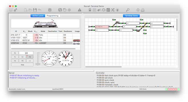 En créant une mise en page avec des capteurs, des blocs et des routes, puis en affectant vos locomotives aux blocs, Rocrail peut déplacer les locomotives par lui-même. Vous pouvez utiliser les horaires et les sections critiques pour créer et affiner les mouvements complexes de chaque locomotive