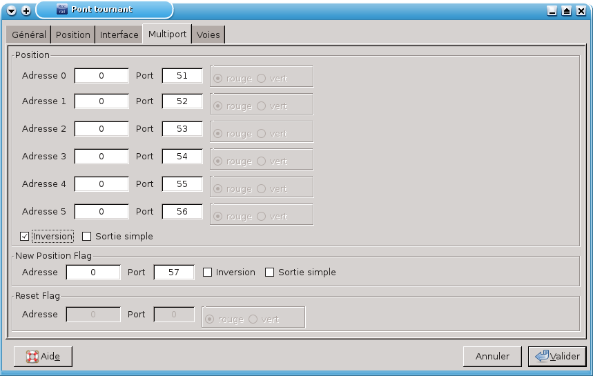 Il est nécessaire de fixer l'option "Inversion", commune pour les adresses de position 0..5.