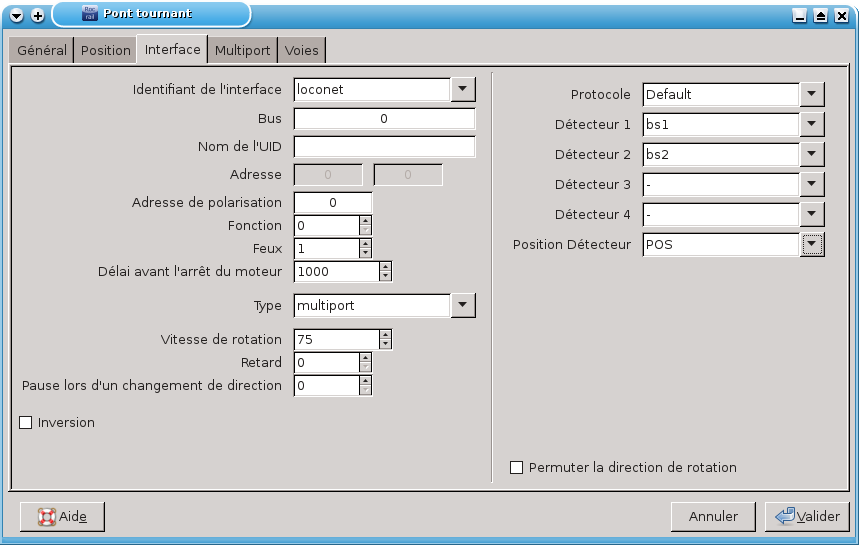 Les détecteurs du pont tournant doit être fixé dans "Détecteur 1..3".
