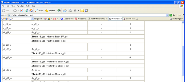 Pour certains objets du plan Rocrail fourni des rapports. Les utilisateurs peuvent accéder à ces rapports par l'onglet index des objets en appuyant sur le bouton documentation: