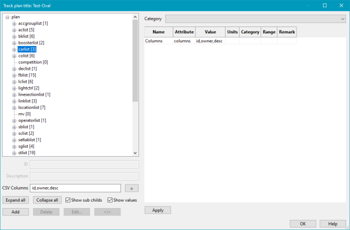 Si un nœud de la liste est sélectionné dans l'arborescence, une liste séparée par des virgules peut être éditée dans le champ CSV columns.