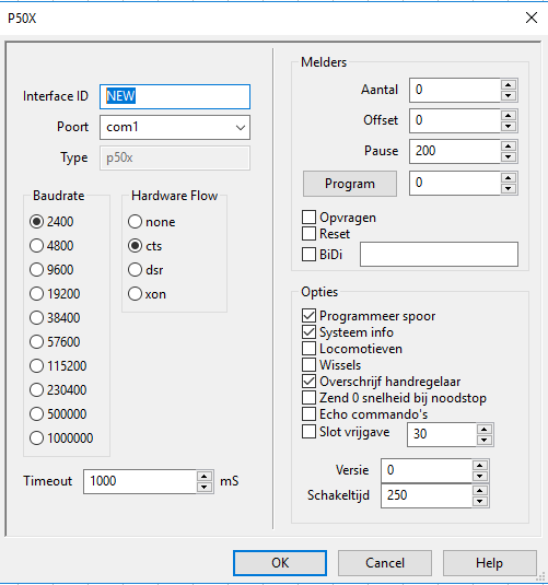 Rocrail en het Twincenter moeten samen kunnen werken met de volgende settings: