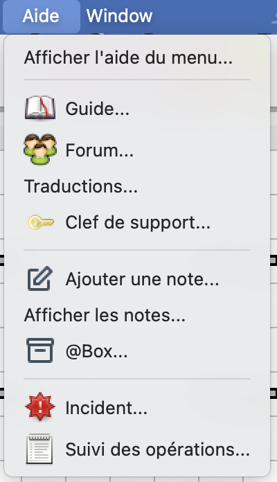 Menu d'Aide