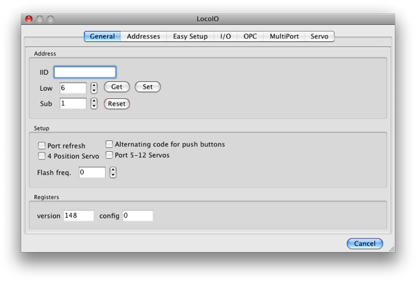 Die Konfiguration des LocoIO mit der eingestellten Low- und Sub-Adresse wird abgefragt und angezeigt.