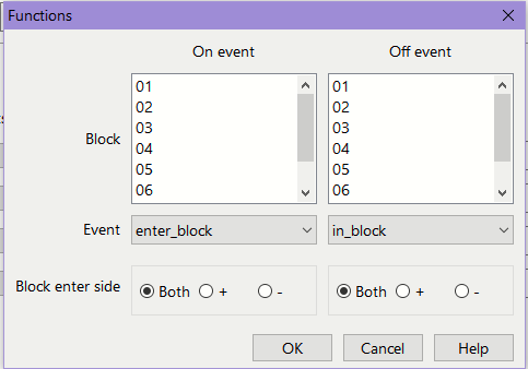 Sélectionnez un ou plusieurs blocs pour déclencher cette fonction on ou off.