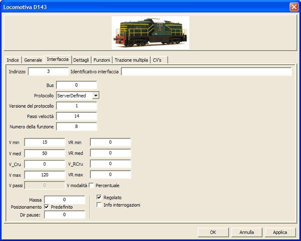 Avviso: le loco con indirizzo 0 (zero) sono considerate da Rocrail come analogiche e senza decoder. Quindi, l'indirizzo non deve essere 0 a meno che non si utilizzi una CD che supporta loco analogiche.