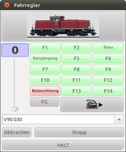 Die Schaltflächen stellen die in den Lok-Eigenschaften definierten Geschwindigkeiten ein.