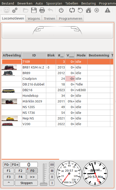 Met een dubbelklik op de één van de velden in de tabel wordt er een appart Loc bedienings venster geopend van de betreffende loc.