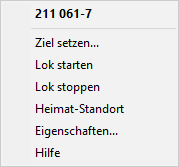 Siehe Kontextmenü des Lok-Bedienfeldes.