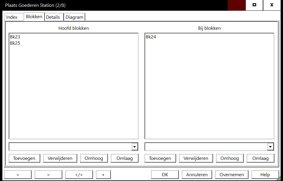 - De volgorde van de lijst wordt bepaald door hoofd blokken en dan bij blokken. De volgorde werkt door wanneer een trein "random" rijdt of volgens dienstroosters.