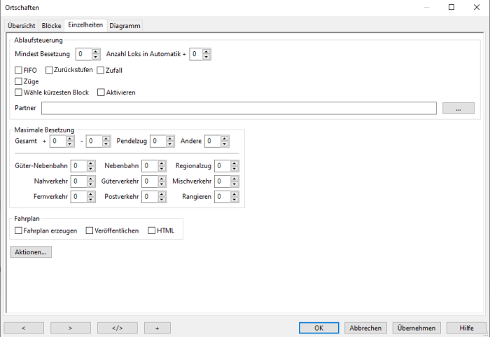 Die Einstellung dieser Option auf Werte größer 0 aktiviert die Ablaufsteuerung der Ortschaft für die Züge.