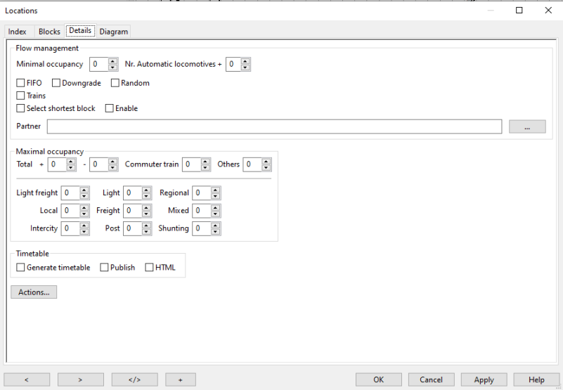 Set the maximal occupancy in the location if it needs some free blocks to move trains without deadlocking. A value of zero disables the maximal occupied option.
