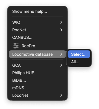 Avec l'option "Base de donnée locomotive" l'exportation des locomotives sélectionnées sera dans LocoDB.