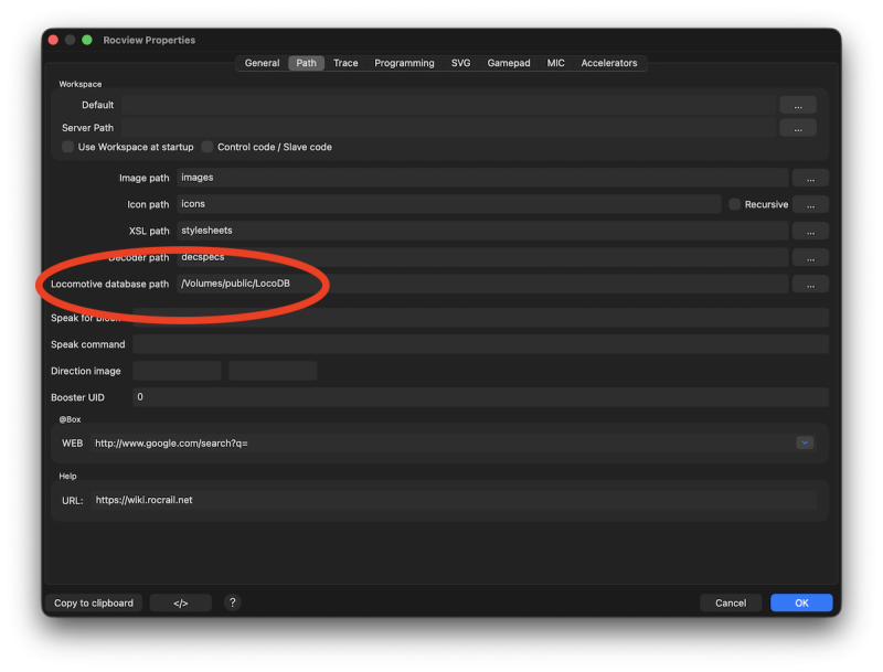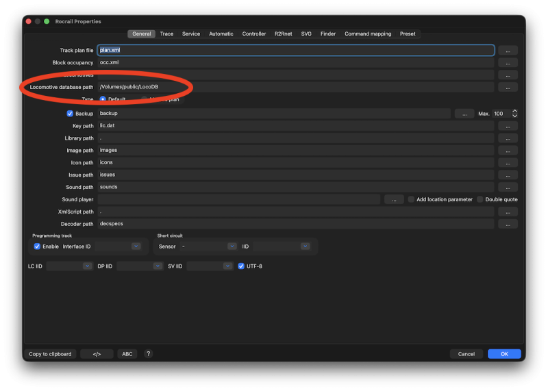 Le chemin de la base de données pointe vers un répertoire qui peut être lu et écrit par tous les utilisateurs exécutant Rocrail.