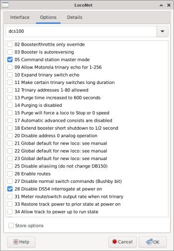 | Certaines manettes, comme l'Uhlenbrock IB et la Fleischmann Profi-Boss, ne pas fixer un identifiant de manette dans le paquet LocoNet. En activant les mises à jour dans Rocrail et les clients l'option suivante doit être réglé: Permettre 0 comme identification de manette de commande |
