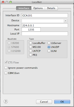 De setup is afhankelijk van de wijze waarop LocoNet is aangesloten : RS232, USB of Socket. Een USB LocoBuffer gedraagt zich in Windows als een virtuele COM-port en in Linux als een USB serieel device zoals /dev/ttyUSB0. Het MS100 interface zou problemen kunnen geven met de serieele hardware vanwege de oneven baudrate. Een LocoBuffer is in te stellen op baudrates die standaard op alle hardware wordt toegepast.