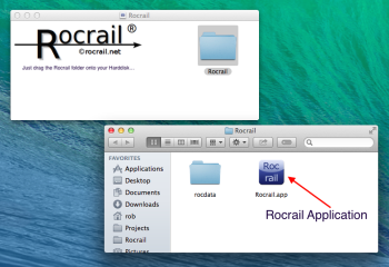 - Effettuare il Drag&Drop del contenuto della cartella Rocrail nella cartella Applicazioni.