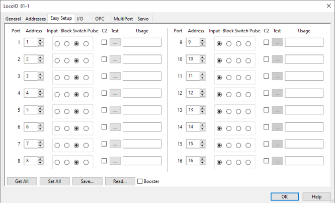 ![]() | Port 1-8 are set to control 8 switching outputs of GCA76. |