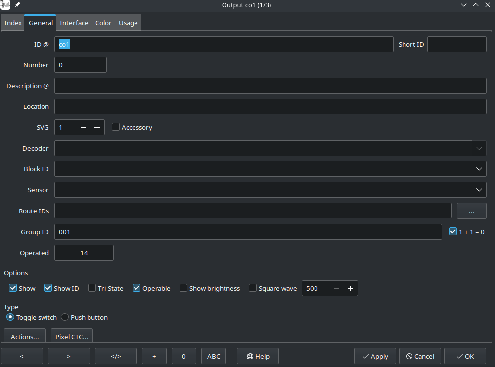L'ID è usato da Rocrail per assegnare una chiave univoca all'oggetto uscita e per questo è molto importante. Se si cambia l'ID, probabilmente si devono modificare anche le azioni dell'itinerario definito.