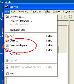 Selezionate l'esempio Cartella di lavoro presente dall'installazione di Rocrail